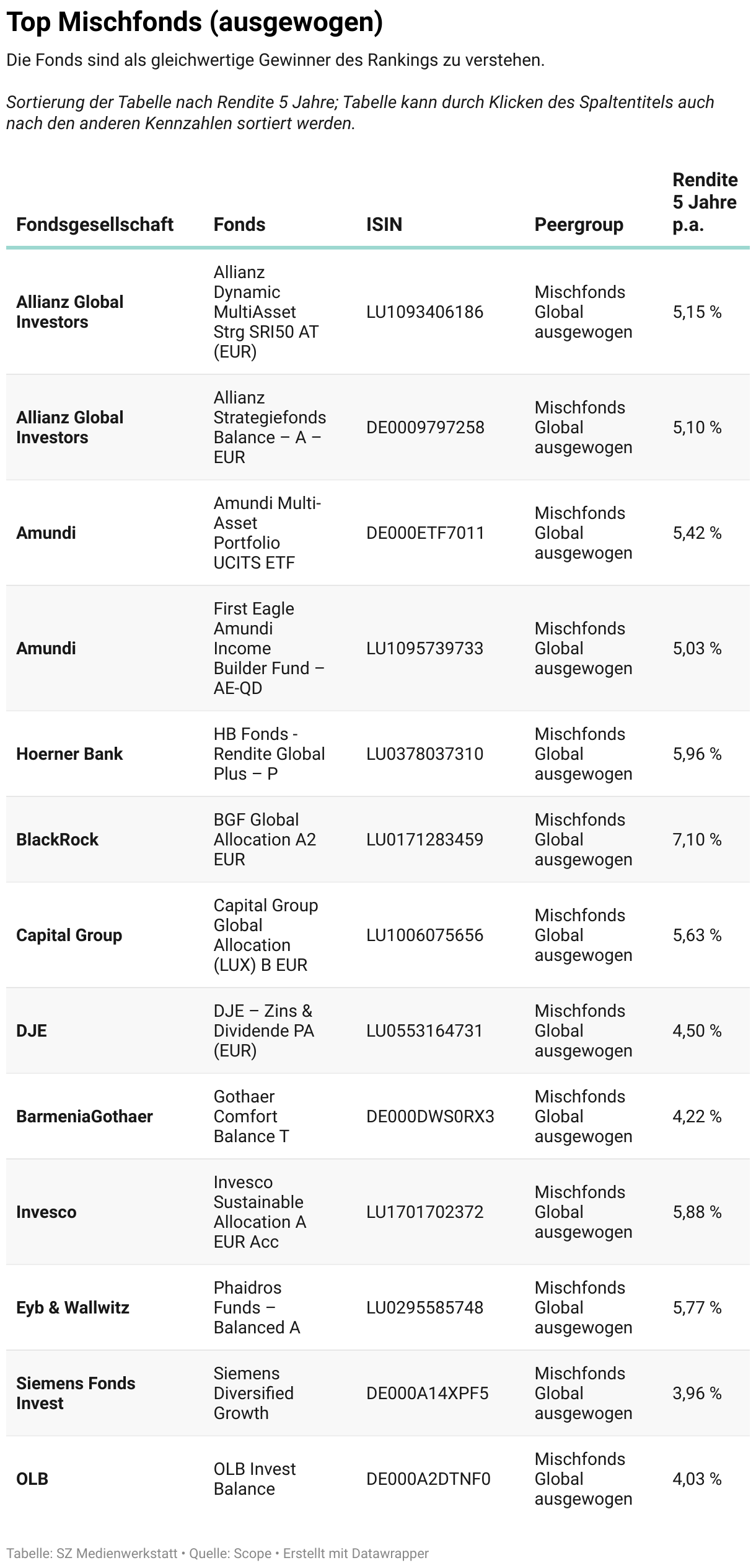 Beim vorliegenden Ranking handelt es sich nicht um eine Anlageempfehlung. Die Untersuchung kann eine umfassende qualitative Bewertung durch ein Analystenteam, wie z. B. das qualitative Scope Fondsrating, nicht ersetzen.