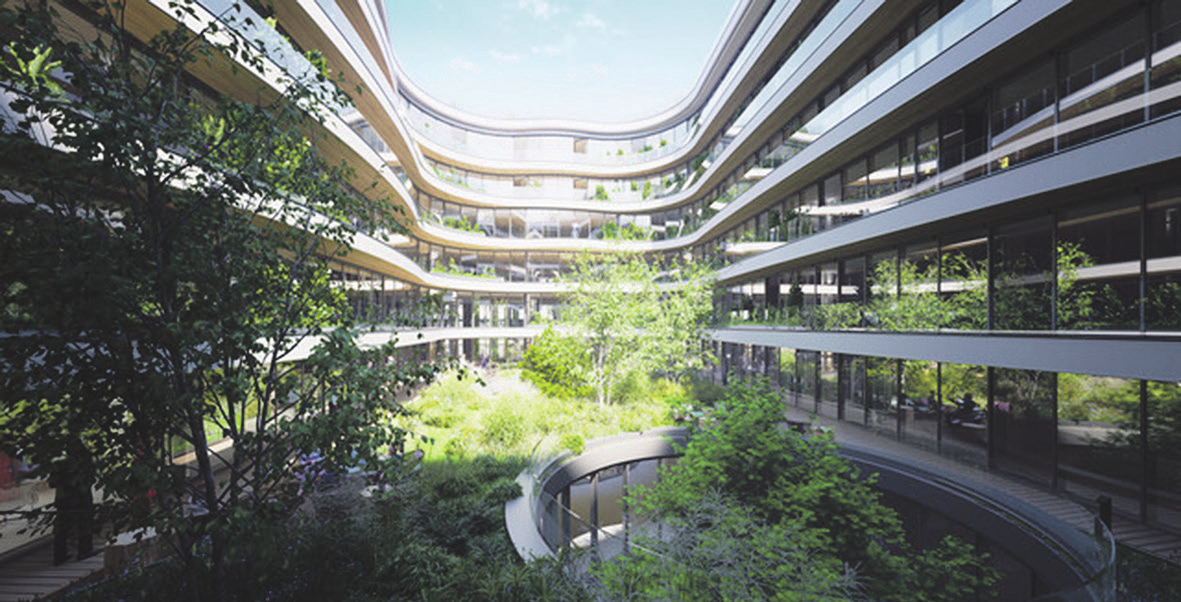 Im Mittelpunkt des Architekturkonzeptes steht die Naturnähe, das sogenannte „Biophilic Design“ - ein absoluter Megatrend für eine grünere und nachhaltigere Zukunft, die die Natur wieder stärker miteinbezieht. Studien konnten nachweisen, dass das „Biophilic Design“, zusammen mit geringen CO2-Mengen und Temperaturen am Arbeitsplatz, die Produktivität sowie das Wohlbefinden extrem steigert.